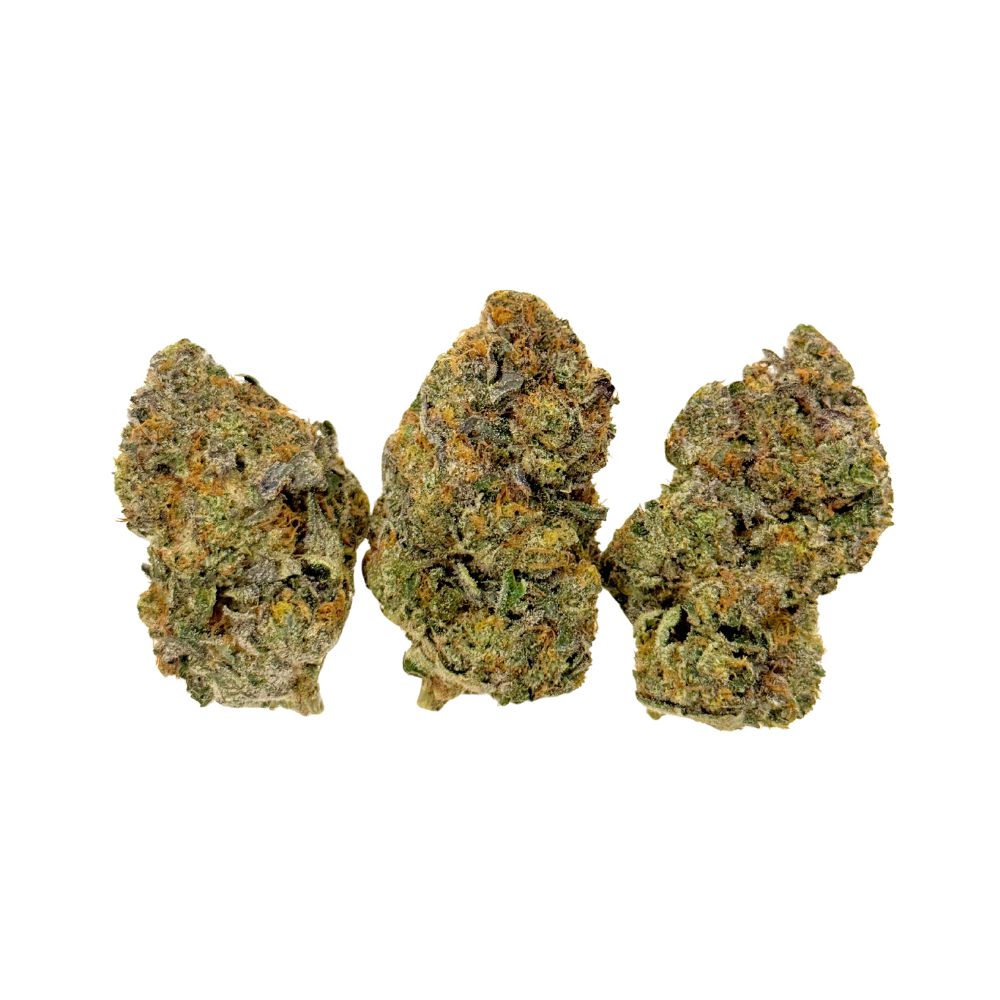 Baby Yoduh is a heavy-hitting indica-dominant hybrid strain (70% indica / 30% sativa) created by crossing the legendary Khalifa Kush with The Menthol, resulting in an exceptionally potent and deeply sedating experience. Boasting an ultra-high THC content averaging 30–33%, this strain delivers a slow-building, full-body high that steadily washes over you in waves of profound relaxation, quickly leading to serious couch-lock and eventual sleep. As the body sinks deeper into sedation, a hazy, blissful cerebral calm sets in, gently clearing away stress, negative thoughts, and low moods while easing the mind into a peaceful, tranquil state. Due to its powerful effects, Baby Yoduh is frequently recommended for managing chronic pain, stress, anxiety, depression, mood swings, headaches, migraines, and insomnia. Its flavor profile is rich and complex, featuring sweet and spicy menthol tobacco notes that intensify with each inhale, while the aroma leans even heavier with gassy diesel, sharp menthol, and bold tobacco undertones. Visually, Baby Yoduh stands out with fluffy, oversized diamond-shaped emerald-green buds highlighted by golden amber hues, bright orange pistils, and thick, chunky amber-tinted trichomes that signal its extreme potency.