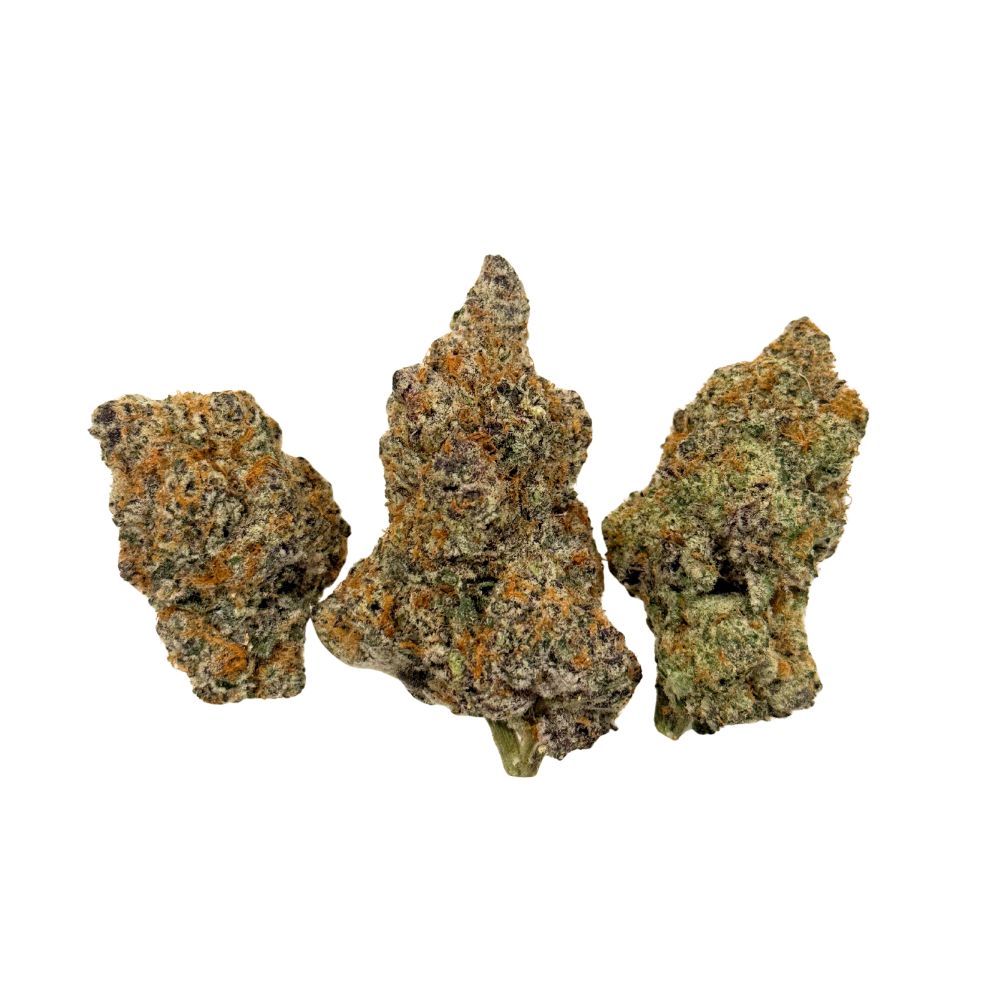 Badman, also known as “The Badman,” is a perfectly balanced hybrid strain (50% indica / 50% sativa) born from the powerful pairing of Animal Cookies and Bubba Kush, delivering an elite, full-spectrum cannabis experience. Despite its intimidating name, Badman offers deeply soothing and long-lasting effects that provide sweet relief for both mind and body. With an extremely high THC content averaging 32–33%, the high hits almost immediately, flooding the mind with uplifting cerebral euphoria that quickly erases stress, negativity, and low moods, replacing them with a hazy, blissful headspace. As the mental calm settles in, a slow-building physical relaxation follows, gradually spreading through the body before dropping you into a deeply stoney, immovable state of total comfort. Due to its powerful and well-rounded effects, Badman is often chosen by experienced consumers to help manage chronic pain, muscle spasms or cramps, depression, mood swings, nausea, and chronic stress. Its flavor profile is rich and indulgent, featuring sweet, sugary nutty cookie notes balanced by a savory, gassy exhale, while the aroma delivers a pungent blend of dank kush, spicy herbs, diesel fuel, and baked cookies. Badman buds are dense and oversized with eye-catching triangle-shaped bright emerald-green nugs, deep blue undertones, vibrant orange pistils, and a shimmering layer of blue-tinted white trichomes that showcase its premium potency.