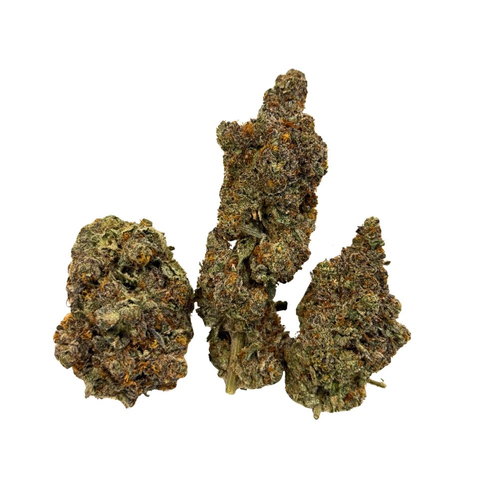 Roswell Code is a powerhouse indica-dominant hybrid strain (70% indica / 30% sativa) bred from the potent Roswell #47 and Chimera Cut genetics, delivering an intensely sedating and deeply relaxing experience designed for seasoned indica enthusiasts. With an exceptionally high THC range of 30–39%, this strain produces fast-acting effects that begin almost immediately with a buzzy wave of physical relaxation, quickly melting away aches, tension, and discomfort. As the body settles into a heavy, stoney calm, the mind follows with a subtle yet powerful cerebral euphoria that quiets racing thoughts and eases you into a deeply sedated, sleep-ready state. Thanks to its extreme potency and full-body effects, Roswell Code is frequently chosen to help manage chronic pain, inflammation, muscle spasms or cramps, stress, depression, mood swings, and insomnia. Its flavor profile is rich and layered, featuring sweet citrusy lemon anise notes complemented by hints of spicy grape on the exhale, while the aroma adds fresh woods and spicy florals beneath a sharp lemony finish. Visually striking, Roswell Code buds are oversized and dense with heart-shaped bright neon-green nugs, dark purple leaves, vibrant orange pistils, and a thick coating of chunky purple-white trichomes that signal its elite strength and premium quality.